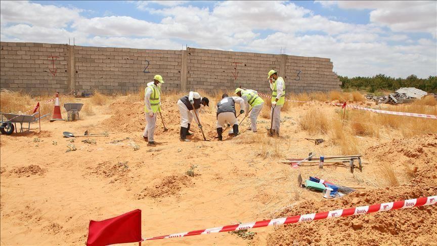Sembilan jasad tak dikenal ditemukan di kuburan massal di Kota Tarhuna, Libya, pada Minggu.