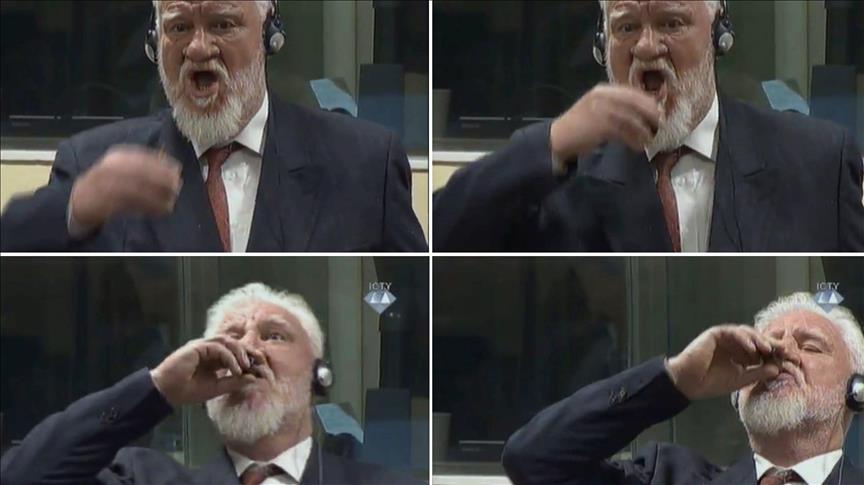 Sidang di Pengadilan Pidana Internasional untuk Eks-Yugoslavia (ICTY) di Den Haag tterpaksa dihentikan saat Slobodan Praljak tiba-tiba berdiri dan meminum cairan yang diakui sebagai racun dari sebuah botol kecil.