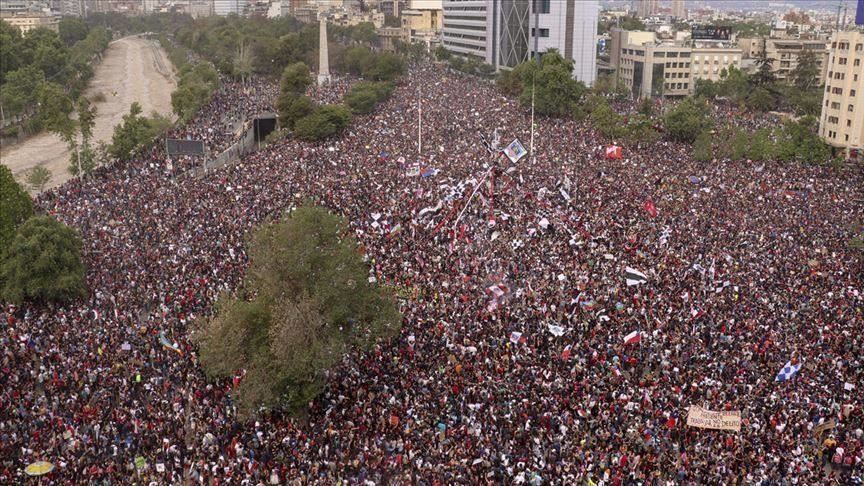 Lebih dari 800.000 orang pengunjuk rasa berkumpul di Lapangan Italia di Santiago pada hari ke tujuh untuk menunjukkan sikap mereka terhadap pemerintah Presiden Sebastian Pinera dan kebijakannya, menurut laporan media setempat.