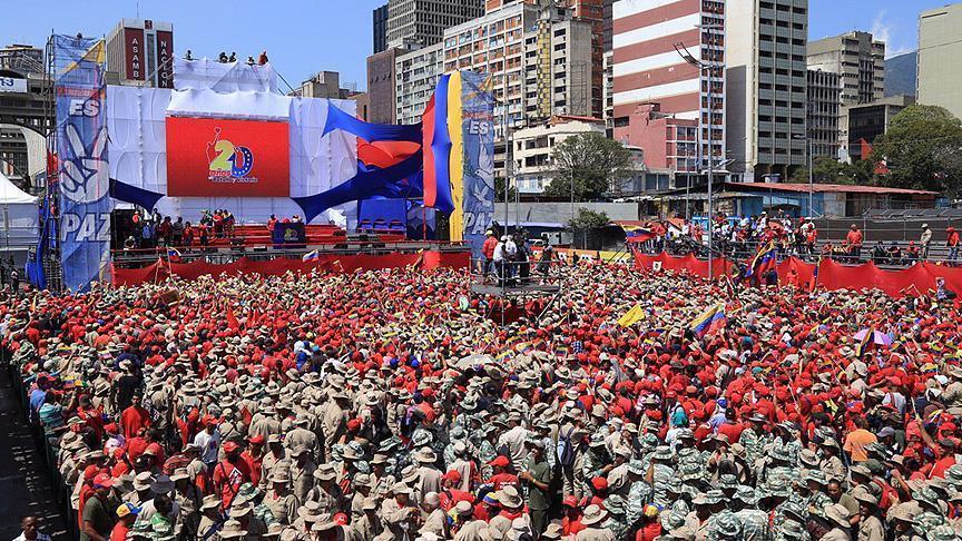 Ribuan warga Venezuela dan serikat buruh yang pro pemerintah menghadiri peringatan ke-20 Revolusi Bolivarian yang dipimpin oleh mantan presiden Hugo Chavez.