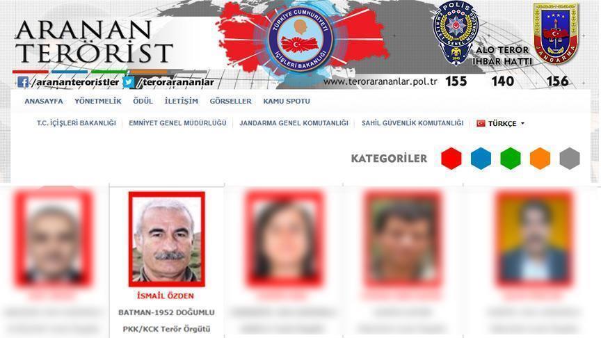 Turki membagi buronan PKK dalam lima kategori warna. Warna merah adalah buron yang paling dicari disusul biru, hijau, oranye, dan abu-abu.