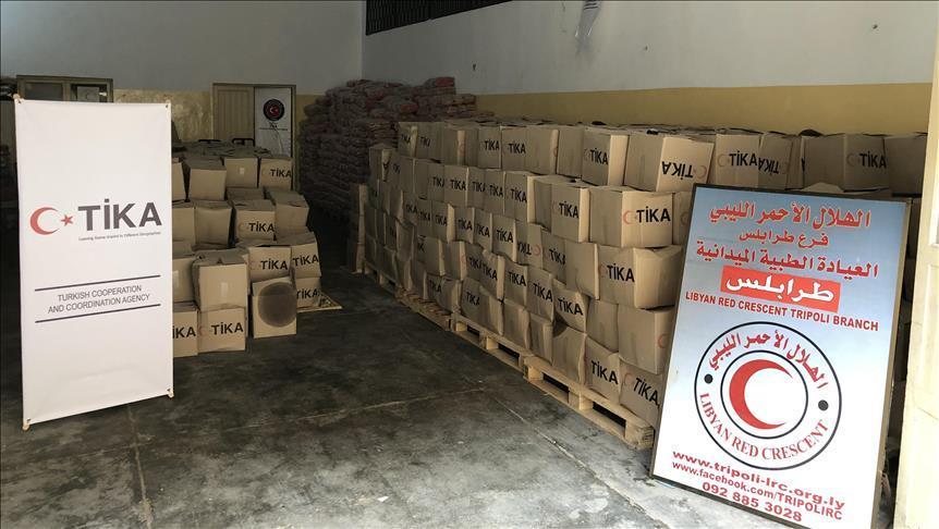 Agen bantuan negara Turki telah menyumbangkan 16 ton bantuan makanan untuk orang-orang terlantar di ibukota Libya, Tripoli, kata agensi pada hari Minggu.