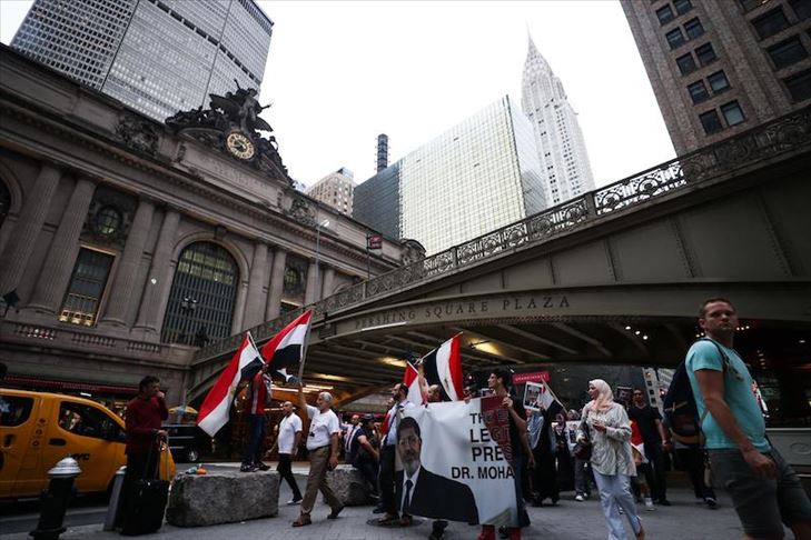Masyarakat Mesir-Amerika menggelar aksi protes terhadap pemerintah militer Mesir atas kematian mantan Presiden Mesir Mohamed Morsi pada Senin saat menjalani persidangang di pengadilan.