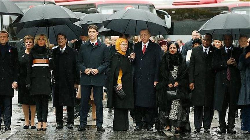 Presiden Turki Recep Tayyip Erdogan menghadiri upacara yang diadakan untuk memperingati seratus tahun berakhirnya Perang Dunia I di monumen Arc de Triomphe Paris pada Minggu.