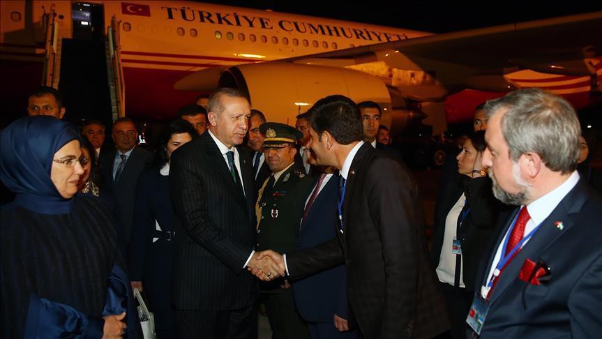 Presiden Erdogan diterima oleh Perdana Menteri Uzbekistan Abdulla Nigmatovich Aripov, Menteri Luar Negeri Uzbekistan, Abdulaziz Kamilov, Walikota Tashkent, Jahongir Ortiqhojaev dan Duta Besar Turki untuk Tashkent Ahmet Basar Sen di Bandara Internasional Tashkent.