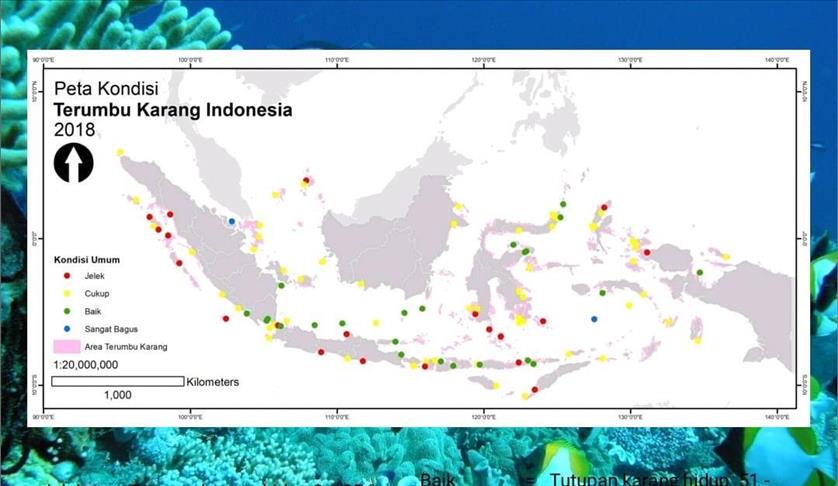 Dan terumbu karang kategori baik ditemukan di 245 stasiun pengamatan atau sekitar 22 persen.