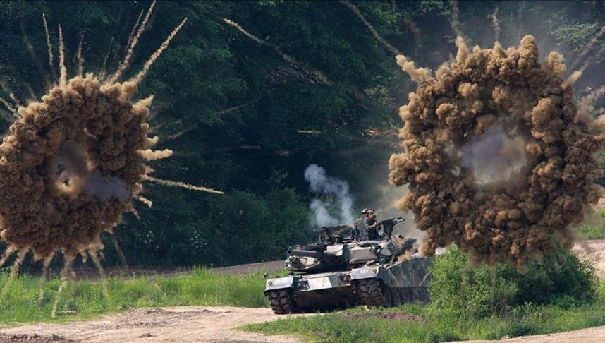 Di lokasi lain, jet tempur F-22 Raptor yang berbasis di Alaska terbang melintasi Semenanjung Korea untuk latihan penerbangan jelang Seoul International Aerospace and Defense Exhibition yang akan dimulai pada Selasa.
