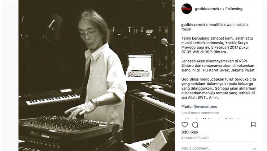 “Telah berpulang sahabat kami, salah satu musisi terbaik Indonesia, Yockie Suryo Prayogo,” sebut akun Instagram resmi God Bless, Senin pagi.