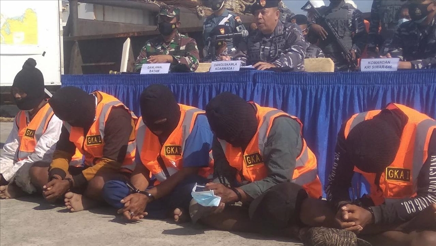 Dalam pengejaran dan penyelidikan, petugas TNI AL mengamankan lima orang terduga pelaku kejahatan laut tersebut yang ternyata adalah warga negara Indonesia (WNI).