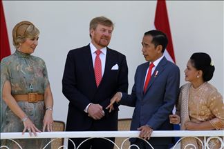 Presiden Joko Widodo menerima kunjungan kenegaraan Raja Belanda Willem-Alexander dan Ratu Belanda Maxima di Istana Bogor, Jawa Barat pada Senin.