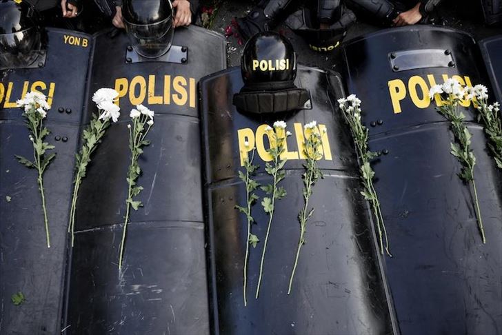 Massa melempari polisi dengan petasan, molotov, dan batu sedangkan polisi berkali-kali menembakkan gas air mata.