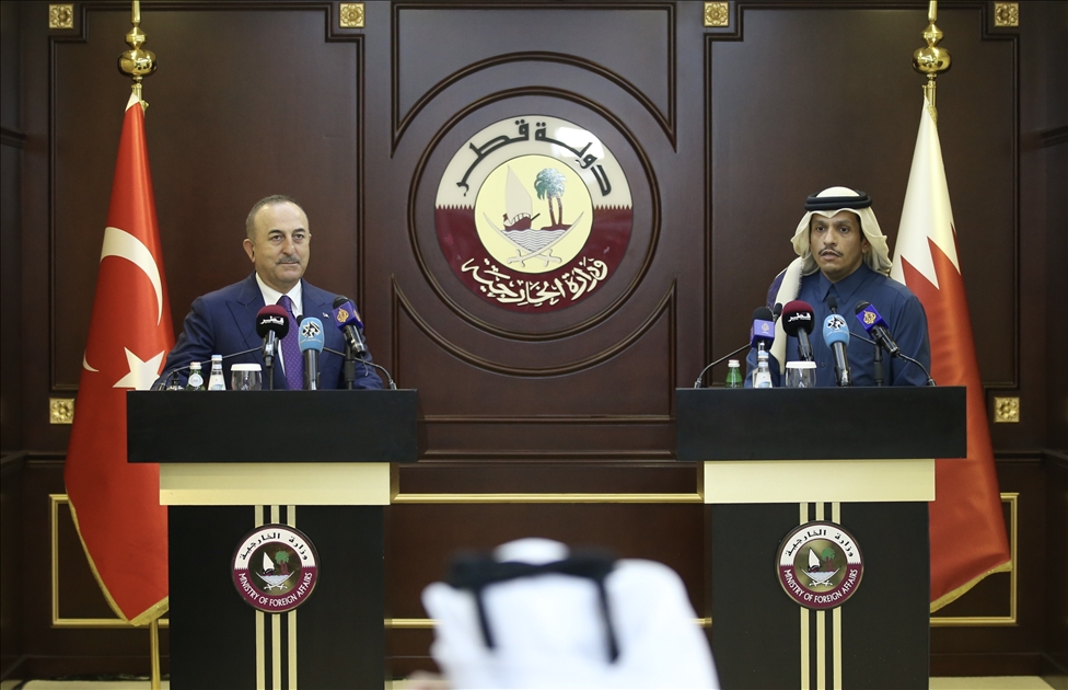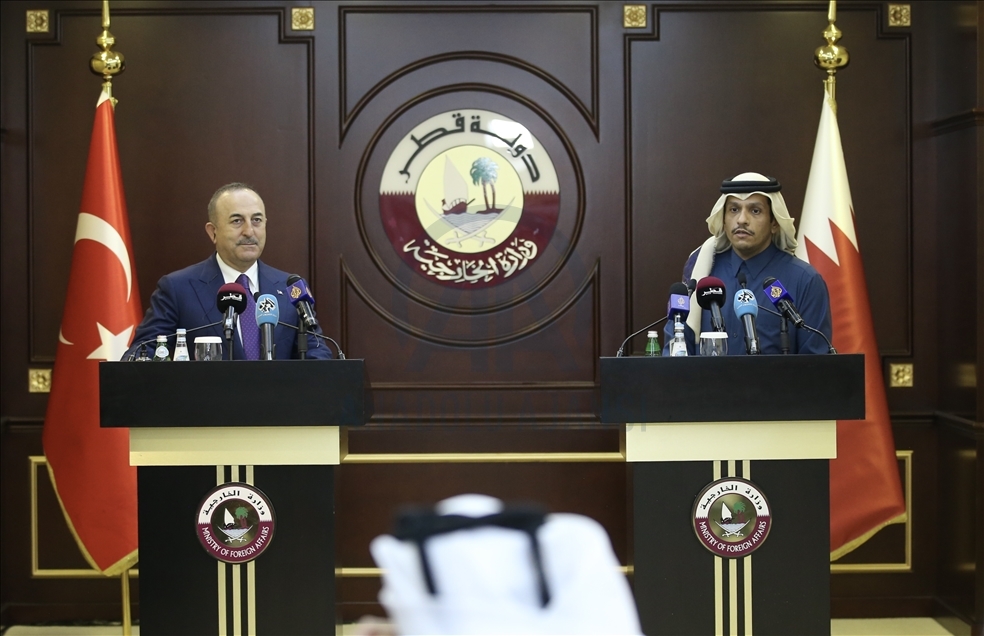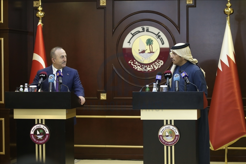 Mevlut Cavusoglu dan Mohammed bin Abdulrahman Al-Thani di Qatar