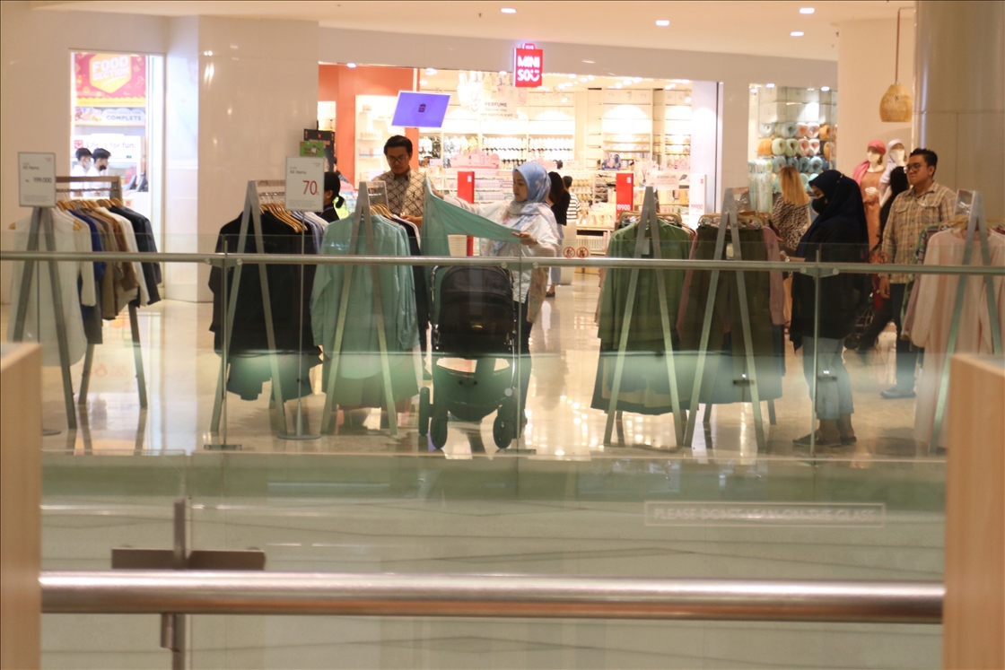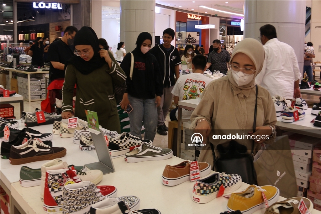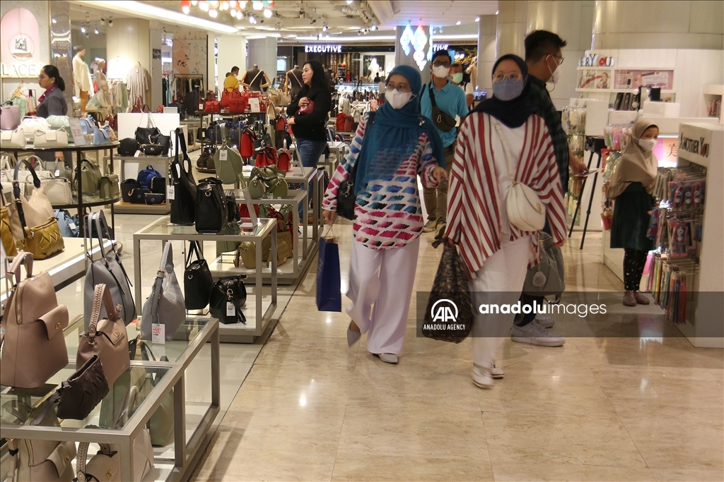 Orang-orang mengunjungi pusat perbelanjaan untuk membeli beberapa kebutuhan menjelang Idul Fitri di Jakarta, Indonesia pada 15 April 2023.Firdaus Wajidi