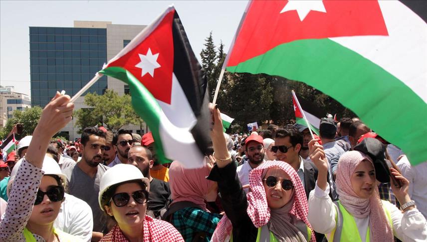 Unjuk rasa itu berlangsung bersamaan dengan aksi protes yang digelar oleh serikat dagang Yordania terhadap RUU itu.