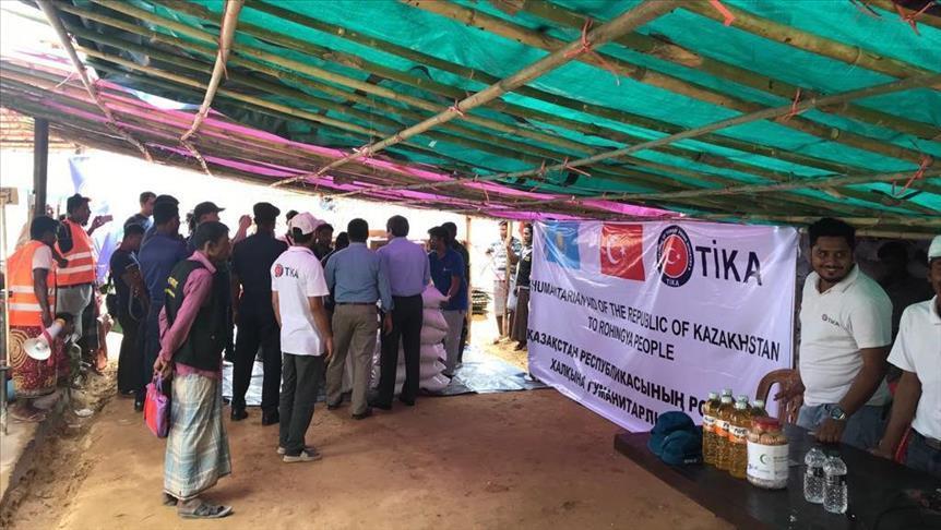 Dalam sebuah pernyataan, TIKA mengatakan membagi-bagikan paket darurat yang berisikan barang-barang perawatan pribadi dan makanan kepada 2.000 keluarga Rohingya, dengan bantuan Kazakhstan.