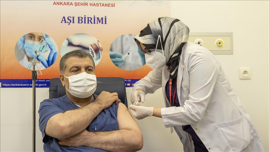Setelah mendapatkan Persetujuan Penggunaan Darurat, pada tahap pertama Menteri Kesehatan Koca langsung menerima suntikan vaksin CoronaVac di Rumah Sakit Ankara.