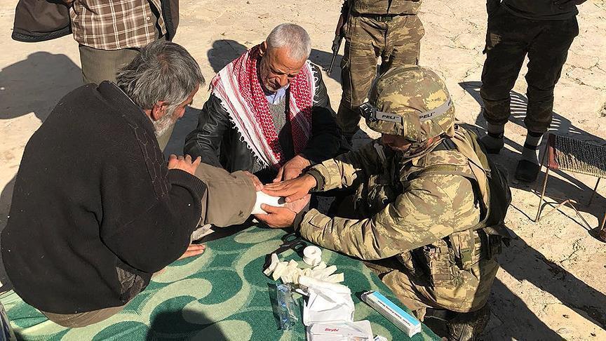 Pasukan Angkatan Bersenjata Turki terus berupaya untuk untuk memenuhi kebutuhan warga sipil di desa Marwana di barat daya Afrin, yang dibebaskan dari teroris YPG/PKK-Daesh dalam Operasi Ranting Zaitun.