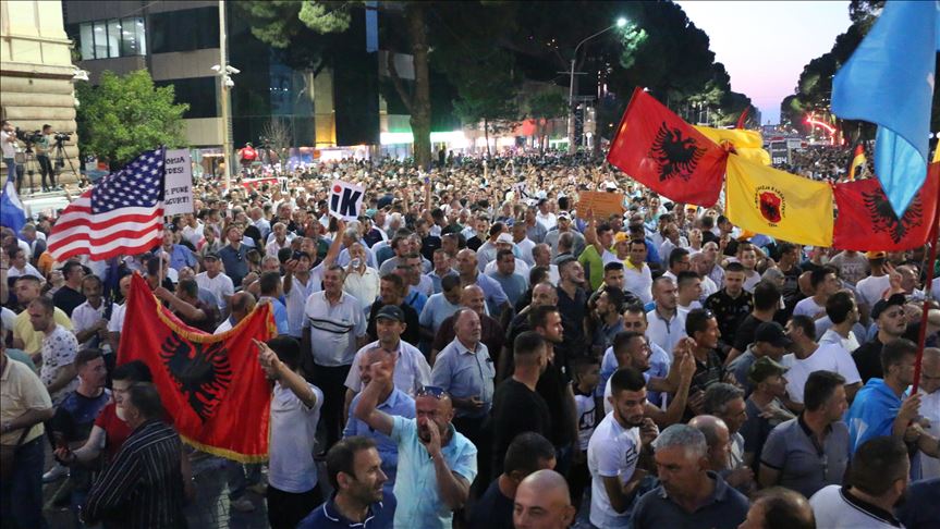 Në Shqipëri është mbajtur protesta radhës e partive opozitare, të cilat kërkojnë dorëheqjen e qeverisë dhe zhvillimin e zgjedhjeve të parakohshme, ndërsa ndryshe nga protestat e tjera nuk është përfshirë nga aktet e dhunës dhe përplasjet, raporton Anadolu Agency (AA).