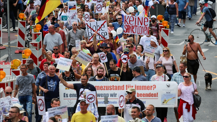 Në fjalimet e tyre, protestuesit pro-rusë kundërshtuan ndihmën me armë të Gjermanisë ndaj Ukrainës dhe kritikuan inflacionin në rritje në vend.