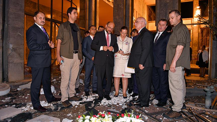 Kahraman'dan 15 Temmuz gecesinde yaşananları dinleyen Schulz, "Kadın, erkek ve gençler hukuk devleti, demokrasi için sizlere siper oldu. Birçok insan hayatından oldu, onlara demokrasi adına borçluyuz. Burayı ziyaret etmeden önce olayın bu kadar dramadik olduğunu görmemiş, bunu hissetmemiştim." dedi.