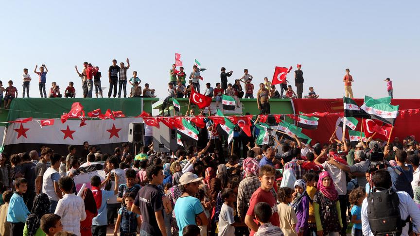 Konteynerlere Türk bayrağı asan göstericiler Türkçe, Arapça ve İngilizce ''Meşru hükümete yönelik darbeye hayır diyoruz. Suriye halkı Türk halkını kutluyor'' yazılı pankart ile Cumhurbaşkanı Recep Tayyip Erdoğan'ın posterini taşıdı. Bazı çocuklar yüzlerini Türk bayrağına boyarken kimi çocuklar da devrimin bayrağını resmettirdi.