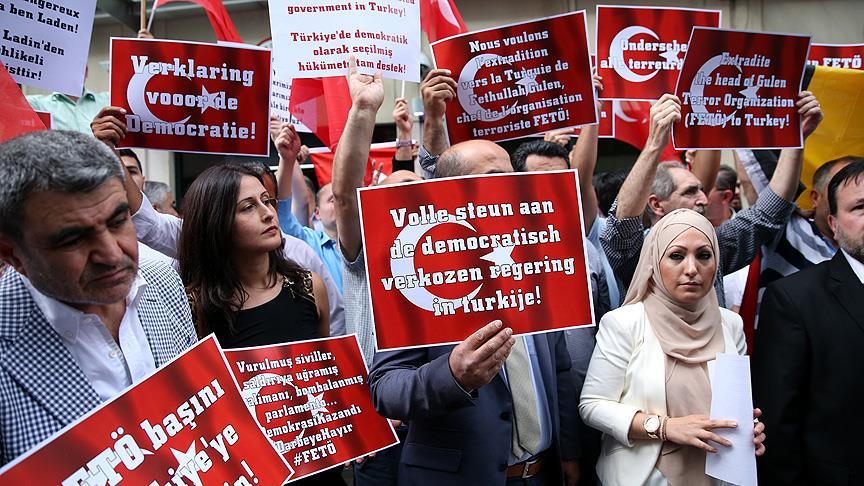 Ülkedeki 20'den fazla STK'yı temsilen çok sayıda Türk kökenli Belçika vatandaşı, darbe girişimini protesto etmek için bir araya geldi.