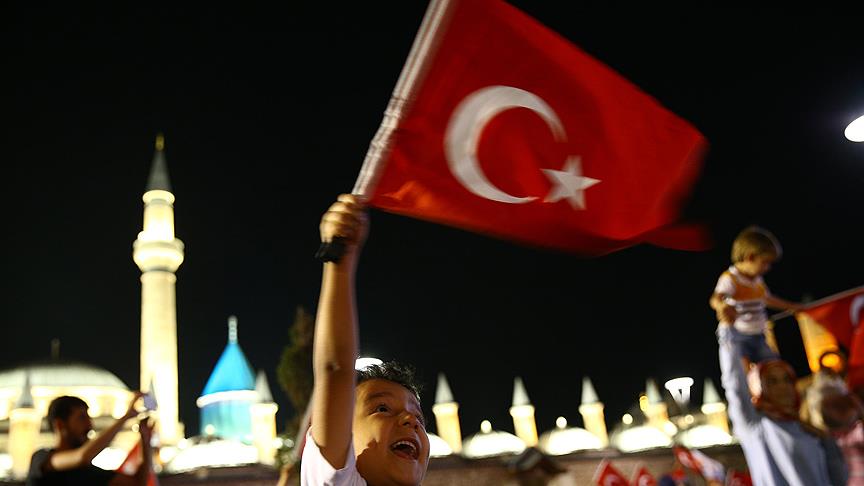 Türk bayraklarını ellerine alan genci yaşlısı tüm Türkiye, darbeye karşı dik duruş sergiledi. Adeta dünyaya demokrasi dersi veren vatandaşlar, bugüne kadar meydanlardan çekilmedi.