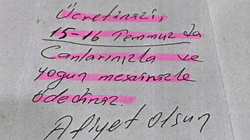 Türkiye genelindeki çeşitli firmalar, polislerin verdikleri yemek siparişlerinin ardından ücret ödeme taleplerini "Ücretini 15-16 Temmuz tarihinde canlarınızla, fazla mesailerinizle ödediniz, afiyet olsun" yazılı fişlerle reddetti.