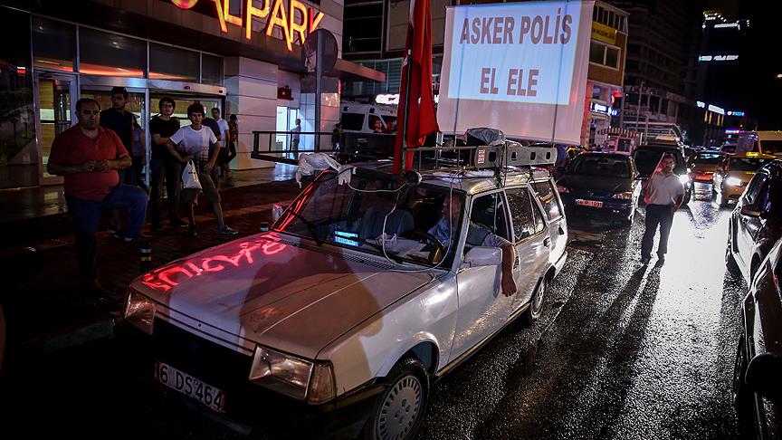 Kentte demir doğrama ustası olarak çalışan 49 yaşındaki Ahmet Çakır, 15 Temmuz Demokrasi Meydanı'na özel olarak tasarladığı otomobiliyle gelerek, darbe girişimine karşı tepki gösterenlere destek vermeyi sürdürüyor.