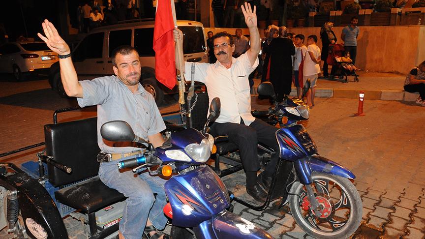 Bedensel engelleri dolayısıyla yaşadıkları güçlüklere rağmen her akşam tekerlekli sandalyeyle geldikleri meydanda hemşehrileri ile omuz omuza demokrasi nöbeti tutarak, geleceklerine sahip çıkıyor.