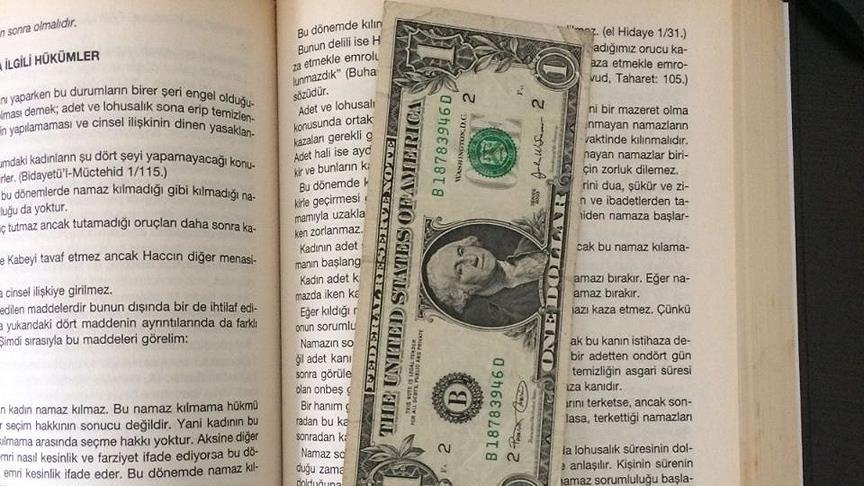 Gözaltına alınan bir zabıt katibinin evinde yapılan aramada, kitap içine saklanmış "B" serisi 1 dolar ele geçirildi.