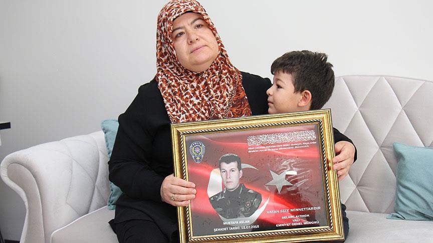 Hain darbe girişiminin yetim bıraktığı çocuklarından ikisinin Ankara'da eğitim gördüğünü, 4 yaşındaki Burak'ın da yanında olduğunu aktaran Aslan, "Burak'a babasının şehit olduğunu söylemedik. 'Babam yok' diyor. Şehitlikte babasının fotoğrafını görünce 'Babamın köyüne mi geldik anne.' diyor. Artık bazı şeyleri biliyor. Eşim sürekli görevde olduğu için çocuk da babasını görevde zannediyor." diye konuştu.