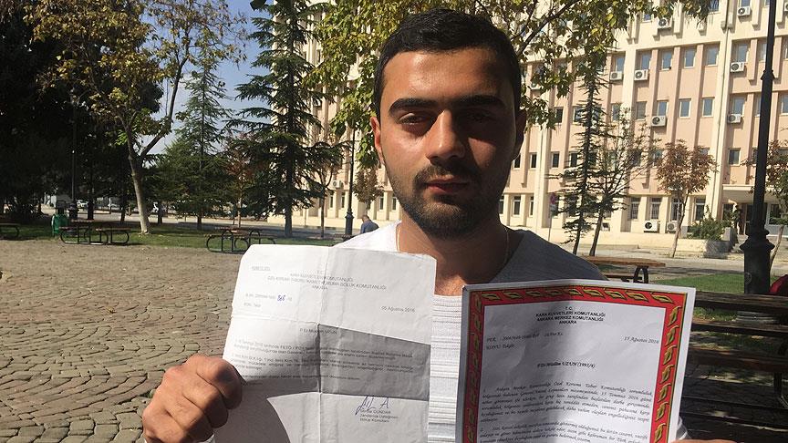 Uzun, Ankara Merkez Komutanı Tuğgeneral Oğuz Tozak tarafından terhisi öncesinde kendisine takdir belgesi verildiğine işaret etti.