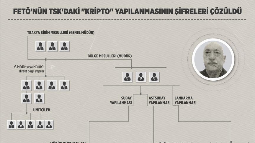 Tekirdağ Cumhuriyet Başsavcılığı'nca yürütülen Fetullahçı Terör Örgütü'nün (FETÖ) 15 Temmuz darbe girişimi soruşturması kapsamında gözaltına alınan iki şüphelinin ifadeleri sonucunda, TSK'daki "kripto" örgüt mensupları ile bağlı bulundukları "sivil imam"ların ilişkisi deşifre oldu.Başsavcılıkça yürütülen darbe girişimi soruşturma, 31 Ocak'ta gözaltına alınan M.Ö ve 10 Mart'ta yakalanan A.Ş'nin, "FETÖ'nün Tekirdağ'da askerlerden sorumlu olan ve kendileriyle örgütsel faaliyetler kapsamında görüşmeler yapan sorumlu abilerin irtibat kurmak için ankesörlü telefon kullandıkları" şeklindeki ifadeleriyle farklı bir boyut kazandı.
