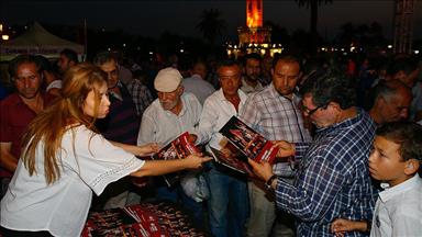 Ellerinde Türk bayraklarıyla Cumhuriyet Meydanı'na akın eden vatandaşlar, marşlar ve şarkılar okudu, ilahilere eşlik etti.