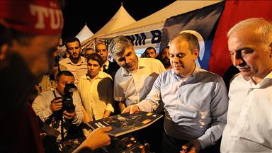 Şehit Ömer Halisdemir’in babası Hasan Hüseyin Halisdemir ve Çekmeköy Belediye Başkanı Ahmet Poyraz, Taşdelen Meydanı'ndaki "Demokrasi Nöbeti"ne katıldı.