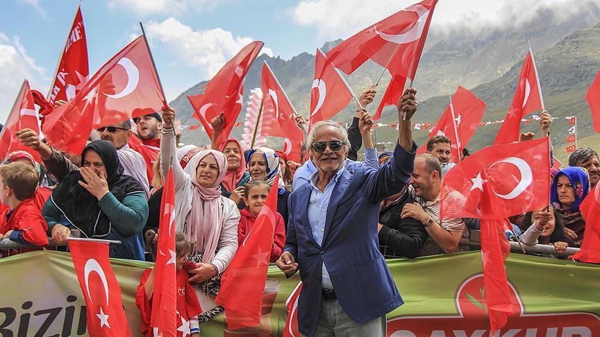 Ekşioğlu Vakfınca Rize'nin İkizdere ilçesine bağlı 2 bin 640 rakımlı Ovit Dağı'nda 15 Temmuz şehitleri anısına "Demokrasi Şöleni" düzenlendi.