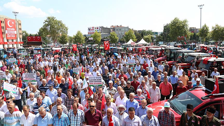 Sınırlı Sorumlu Adapazarı Pancar Ekicileri Kooperatifine (APEK) bağlı çiftçiler, Sakarya Ticaret Borsasından yaklaşık 100 traktörle şehir merkezine doğru konvoy oluşturdu. Kent merkezinde tur atan çiftçiler, traktörlerini darbe girişiminin ardından "Demokrasi Meydanı" adı verilen alana park etti.