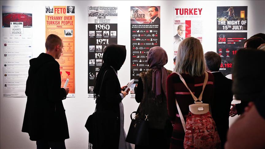 IUS'ta bir ay boyunca ziyaretçilerine açık kalacak sergide, FETÖ'nün kimlik yapısı, Cumhurbaşkanı Recep Tayyip Erdoğan'ın lider kişiliği ve Türkiye'nin darbe tarihi grafiklerinin yanı sıra AA fotoğraflarına yer verildi.