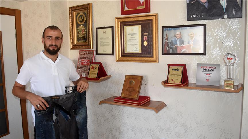 Malatya'da Fetullahçı Terör Örgütü'nün (FETÖ) darbe girişimine tepki göstermek için gittiği 2. Ordu Komutanlığında askerlerin ateş açması sonucu yaralanan Enes Gün, vurulduğu gün parçalanan kemerini ve kanlı pantolonunu 15 Temmuz'u unutmamak ve gelecek nesillere anlatmak için hala saklıyor.