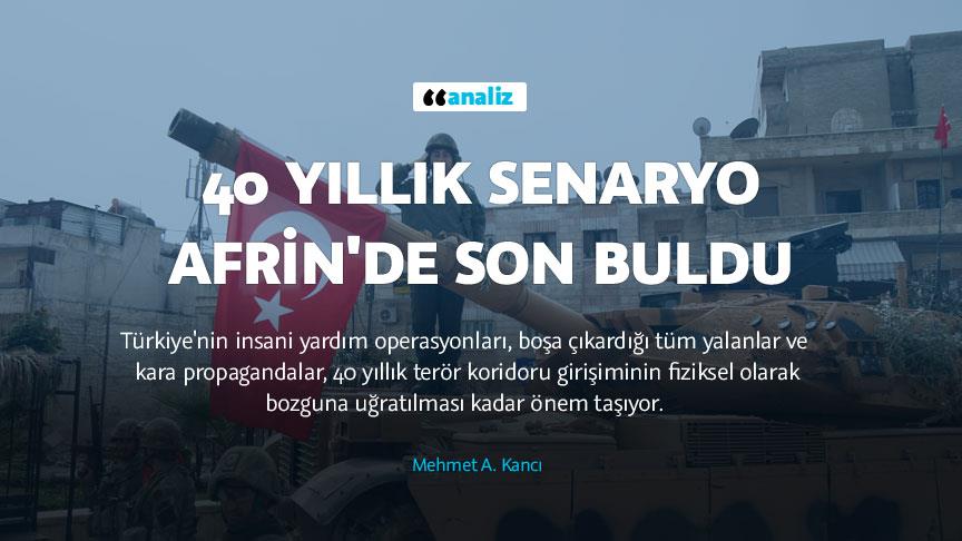 Türkiye'nin insani yardım operasyonları, İHA görüntüleri ve evlerine dönen Afrinli siviller aracılığıyla boşa çıkardığı tüm yalanlar ve kara propagandalar, 40 yıllık terör koridoru girişiminin fiziksel olarak bozguna uğratılması kadar önem taşıyor.