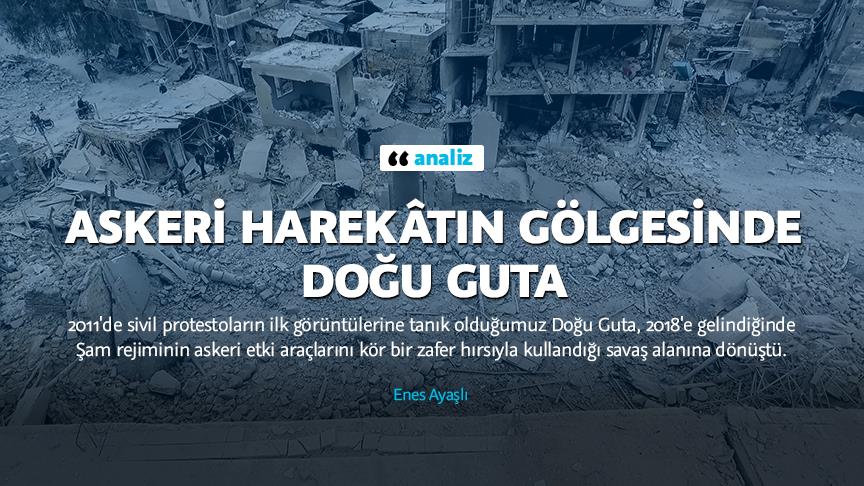 Başkanlık Sarayı’na yaklaşık 10 km mesafedeki konumu ile Doğu Guta, Esed rejiminin öncelikli tehdit algısını şekillendirirken, muhalif unsurların teslim olduğu açıklamasıyla birlikte yaklaşık yüzde 85’i rejim tarafından kontrol altına alınmış oldu. Duma bölgesinin geriye kalan kısmı için de görüşmeler sürdürülüyor. İnsani koridorlar açıldığından bu yana yaklaşık 110 bin kişinin bölgeyi terk ettiği rapor edilirken, geride binlerce kişinin cansız bedeni kaldı. 2011'de sivil protestoların ilk görüntülerine tanık olduğumuz Doğu Guta, 2018'e gelindiğinde Şam rejiminin askeri etki araçlarını kör bir zafer hırsıyla kullandığı savaş alanına dönüştü. Doğu Guta’nın başkente yakınlığı sebebiyle var olan stratejik önemi, taktik önermelerde insani kaygıların güdülmemesine sebep olurken, çatışan taraflar ile siviller arasında bir ayrım gözetilmemesi, insanlık dışı manzaraların ortaya çıkmasına sebep oldu.