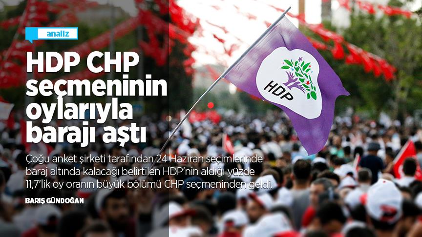 Anket şirketleri tarafından 24 Haziran Cumhurbaşkanlığı ve Milletvekili Genel Seçimi'nde baraj altında kalacağı belirtilen HDP'nin aldığı yüzde 11,7'lik oy oranının büyük bölümü CHP seçmeninden geldi.