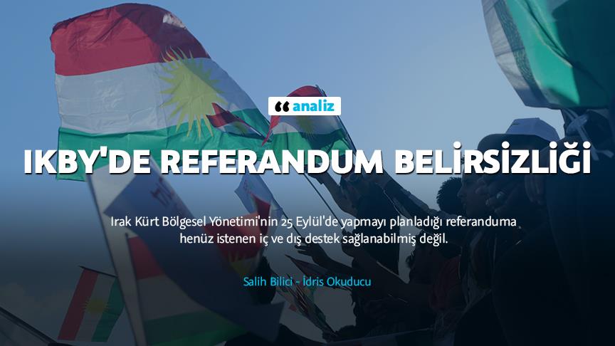 Irak Kürt Bölgesel Yönetimi'nin (IKBY) 25 Eylül'de yapılmasını planladığı bağımsızlık referandumuna henüz istenen iç ve dış destek sağlanabilmiş değil. Şimdiye kadar Kürdistan Demokrat Partisi (KDP) dışındaki diğer büyük partiler, referanduma destek vereceklerine dair resmi açıklamaları henüz yapmadılar. Özellikle Süleymaniye bölgesindeki partiler, referanduma yönelik mesafeli duruşlarını koruyor. Türkmenlerin ve Arapların da önemli bir kısmının referanduma sıcak bakmadıkları biliniyor.