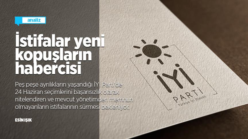 Peş peşe yaşanan ayrılıklar, İYİ Parti'nin gidişatından memnun olmayanların istifalarının devam edeceği yorumlarını beraberinde getiriyor.