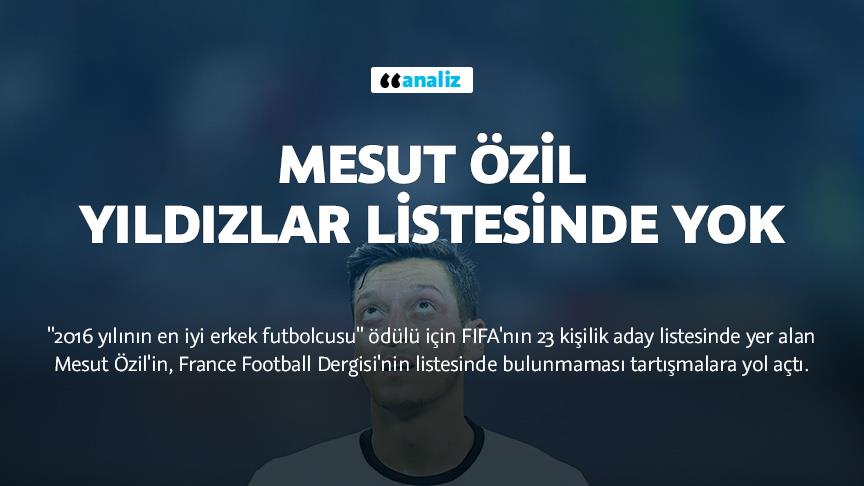 FIFA'nın bu yıl ayrı olarak düzenlediği "2016 yılının en iyi erkek futbolcusu" ödülü için belirlediği 23 kişilik aday listesinde yer alan Mesut Özil'in, France Football Dergisi'nin listesinde olmaması tartışmalara yol açtı.