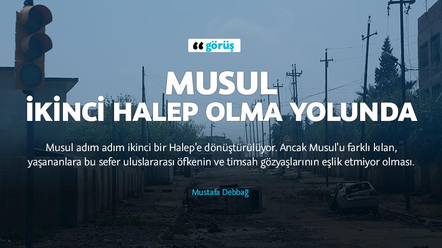 Musul adım adım yeni bir Halep'e dönüştürülüyor. Ancak Musul'u farklı kılan, yaşananlara bu sefer uluslararası öfkenin ve timsah gözyaşlarının eşlik etmiyor olması. Bu sıralar işlenen suçlar ve sebep olunan can kayıplarında, Esed rejiminin ve Rusya'nın yerini Irak ordusu ve onun ABD öncülüğündeki müttefikleri aldı. 'Terörizmle mücadele' ve 'DEAŞ'ı mağlup etme' bahanesiyle ne kadar da kolay basıyorlar tetiklere.
