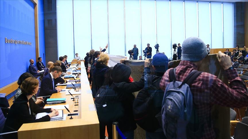 Terör örgütü YPG/PKK yanlıları, Barış Pınarı Harekatı'nı protesto etmek amacıyla Almanya Hükümet Sözcüsü'nün haftalık basın toplantısını bastı.