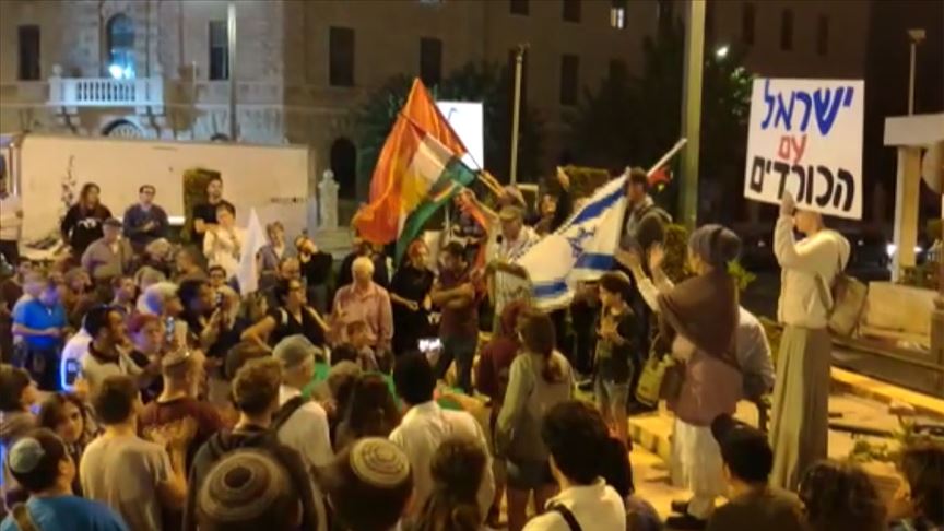 Batı Kudüs'teki Tsarfat/Paris Meydanı'nda toplanan terör örgütü yandaşı grup, Türkiye aleyhine slogan attı.