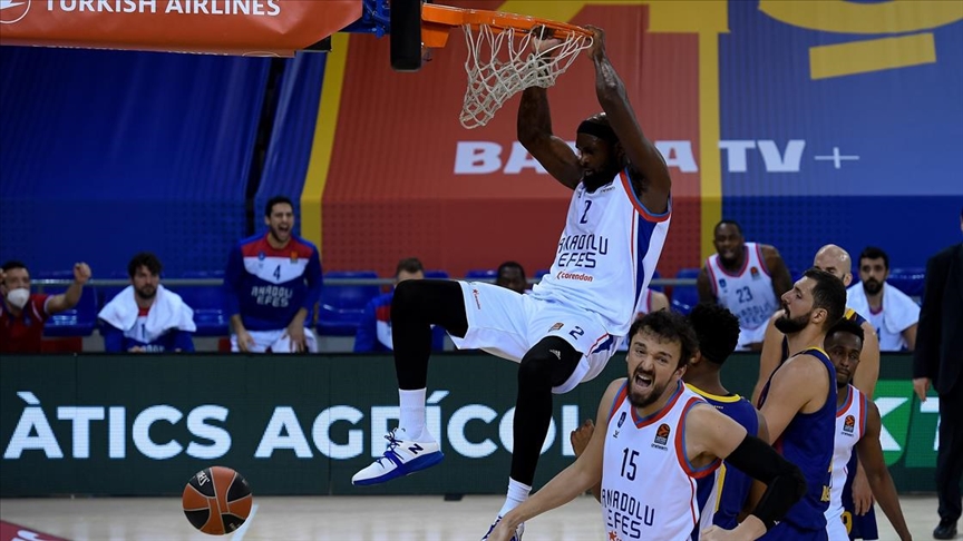 Bir maç eksiği bulunan Anadolu Efes, 13. galibiyetini aldı. Ligin zirvesindeki Barcelona ise 7. mağlubiyetini yaşadı.